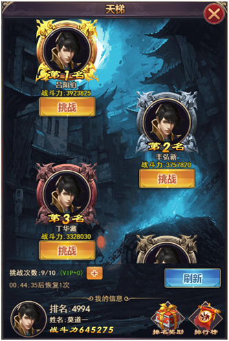 “竞技”玩法是《修真界》中的一种PVP玩法,各位修士可通过点击界面右侧的“竞技”参与。进入竞技玩法后,可挑战位于“天梯”上的其他修士,挑战成功后可获得剑魂、铜钱以及元宝奖励并且获得所挑战修士的天梯名次;只有进入前10名的修士才有资格挑战天梯前三名的占有者。每位修士每日拥有10次挑战机会(提升VIP等级可以增加挑战次数哦)每日0点会根据天梯排名发放丰厚奖励!
