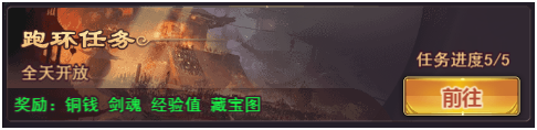 1. 跑环任务共有5轮,任务进度越高奖励越丰厚,每日5点刷新任务完成状态。