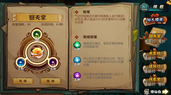 同样是范围伤害,但又有更强的控制效果,突破一阶后找个角度一招能把地图上所有小怪拉到你身边,接个回天掌就全清空了,用在护送类地图上简直不要太爽。注意技能的comb,虽然有自动,但是要站在仙阶榜之巅,练好操作还是必不可少的!