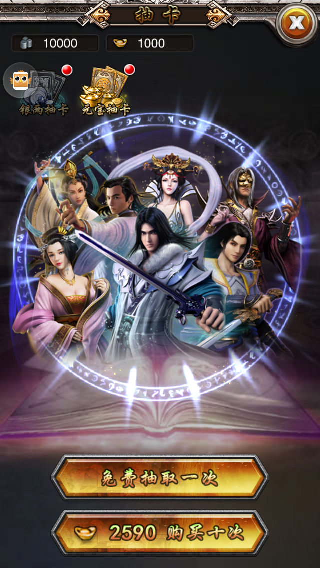 金元宝招募:每2天拥有一次免费招募机会,可通过花费金元宝的方式获得额外的招募机会,获得高品质侠客的几率将会获得提升。