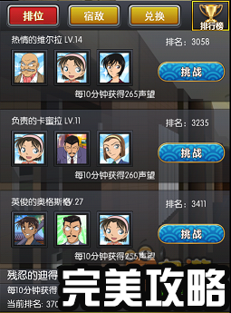 《名侦探柯南OL》除了PVE玩法之外,还有丰富的PVP系统,让友友们战个痛快!排位赛就是和其他玩家进行PVP对战,挑战成功即可上升排名。为了荣誉感,难道不想早日登上排行榜被众人膜拜吗?