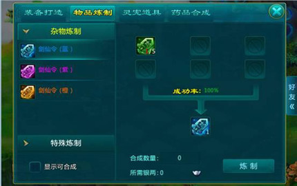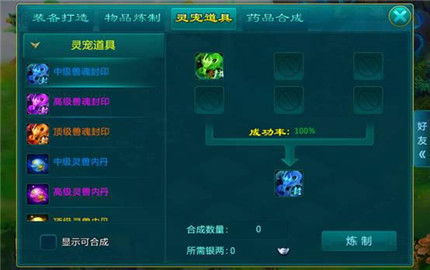 炼化功能分为装备打造类——专门合成强化道具和进阶道具,如强化石,诛仙灵珠;