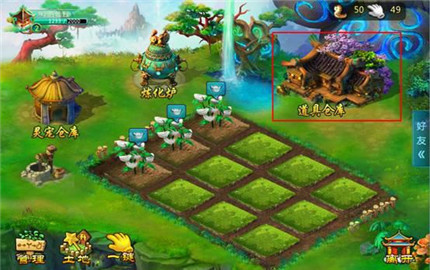 从下面图片大家可以看到,仙园系统包括五大块:仙园种植系统、灵宠仓库、炼化炉、道具仓库。界面十分直观,没有什么可难的。