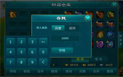 仙园-道具仓库是让玩家可以存放道具、宝石、元宝、银子的地方。既可以让玩家灵活操作身上的物品,也可以当成钱庄,灵活存取元宝银子,防止玩家失误操作误花元宝。