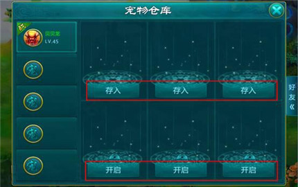 灵宠仓库一共有十二个格子,玩家可自行免费开启三个格子,剩下9个格子需要花费一定的元宝进行开启。