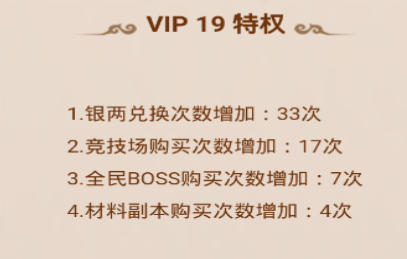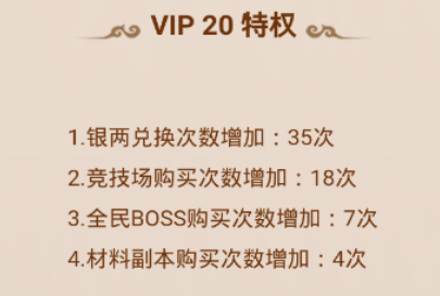 VIP 20特权1.银两兑换次数增加:35次