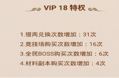 VIP 18特权