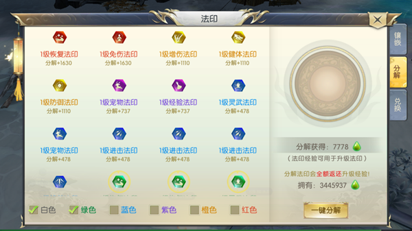 抽到品质较好的法印不必重新升级,分解法印可全额返还法印升级经验。