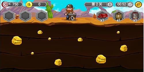 2:关卡里有很多的大石头,果碰抓到石头就会非常消耗时间。所以建议带够一些炸药,当抓到大石头的时候使用炸药道具,把石头炸掉。