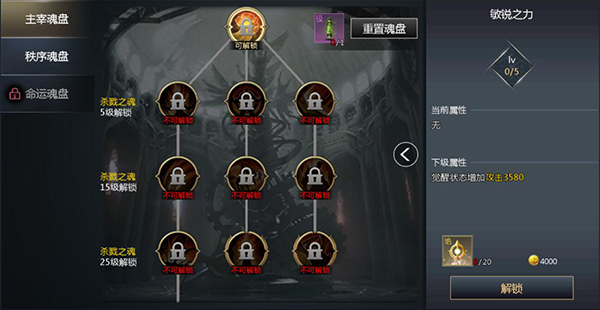 觉醒能够为玩家带来强大的变身技能,玩家通过释放任意技能时会获取觉醒能量点,能量槽满后就能够在短时间能变身并使用强力的觉醒技能。 每位玩家都拥有三种不同类型的魂盘分别对应攻击、生存、辅助..