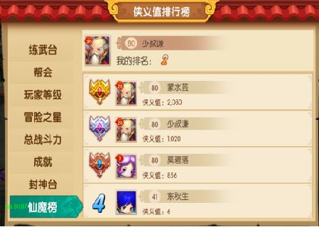 3.完成的越多,侠义值会越高哦!我们专门设立的侠义值排行榜,可以轻松看出哪位取经人攻打的次数多,哪位取经人在偷懒了。