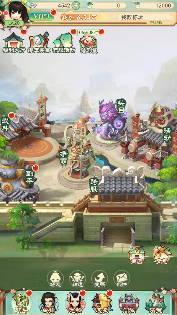 按照指引完成任务,很快就达到20级解锁主城系统,进入主城系统能看到新世界,又有新福利可以在福利大厅与开服活动领取。在这里还能完成各类挑战,副本闯关、击杀BOSS、争霸天下、跨服组队……玩法不止于此,进入游戏体验众多玩法,轻松过关,告别枯燥!