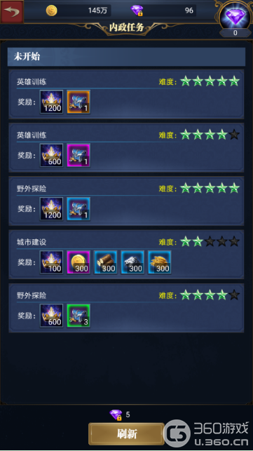 在主城的内政厅中,接取内政任务可以获得政绩提升爵位等级。完成钻石矿脉的内政任务可以获得绑钻礼包,这可以说是获得绑钻最轻松的途径了。只是该任务并不是经常有。