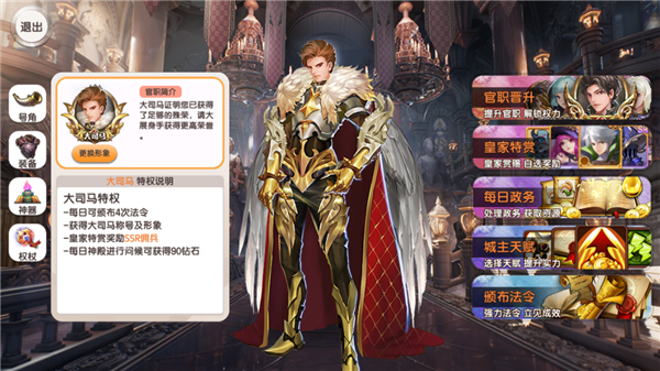 城主培养系统是《幻想Q传》里面非常有趣的系统,其中包括官职晋升、皇家特赏、每日政务、天赋、法令、装备、神器等多个玩法。它随着玩家任务的完成会逐渐提升官职和奖励、开启新功能,下面给大家详细介绍一下。