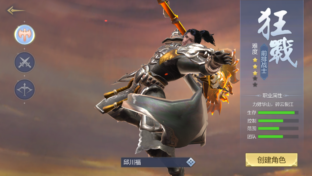 狂战士一名前排战士型角色,拥有超强的物理输出能力,能扛能揍,具备大范围控制技能,凭借其优秀的冲锋能力,一夫当关万夫莫开!
