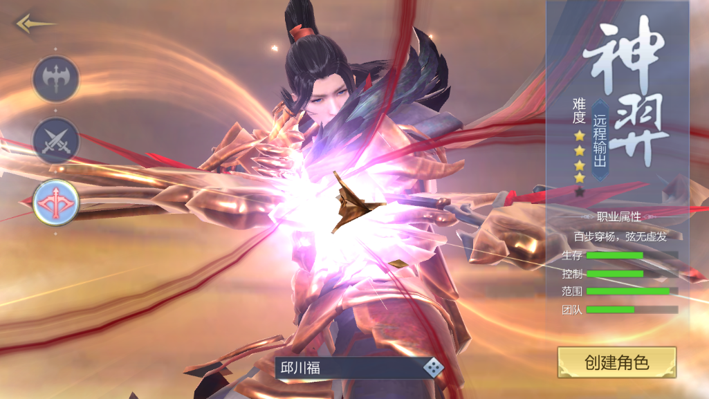 神羿是一名射手型角色,高攻高暴,双能量体系,远距离攻击。凭借快速的移动和多样的远程攻击,使敌人无法靠近自己!
