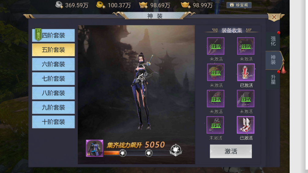 游戏中的装备不仅有等级属性,还有阶段区分,在游戏渡过前期之后,只要集齐四阶以上的8件装备,即可激活装白套装属性,属性和战斗力都可以得到大幅的提升。