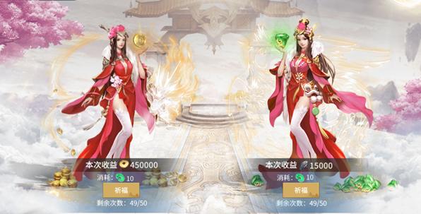 在【历练-天宫赐福】里可以祈福,以获得金币,每日首次祈福免费,继续祈福需要消耗仙玉,每日最高祈福50次。
