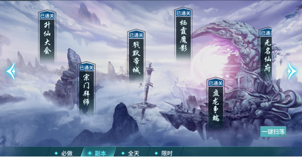 首服当日即可开启副本,限量挑战,推荐各位仙友在做完其它任务后,以最佳状态发起挑战,挑战通关副本隔天可进行扫荡;推荐当日通过鼓舞(元石或仙玉)刷至最高,挑战失败不扣除挑战次数,通关用时最短的仙友,可获得最快通关名称展示,推荐每日必刷,在忘记挑战的情况下还可以通过点击【历练-奖励找回】进行相应的奖励找回。