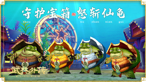 在最终的仙龟BOSS现身前,打开已完成守护的宝箱可以召唤仙龟分身,将其击杀的队伍将获得积分奖励。待宝箱争夺阶段结束,全场景中共将刷新4只不同品质的仙龟BOSS,完成最后一击,豪夺高额积分,获取图片称号、侠影、绝世武功等超多豪华奖励!