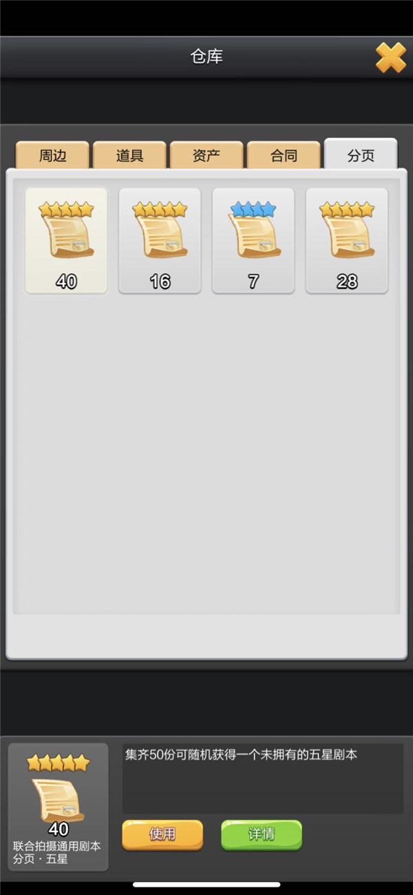 以上便是小编为大家带来的票房大卖王五星攻略之《剧本分页全解析(上)》,下期攻略中,小编将继续为大家介绍游戏中剩余的剧本分页究竟能获得哪些剧本,是否值得玩家朋友耗费大量的精力去挨个努力呢。我们下期攻略再见吧!