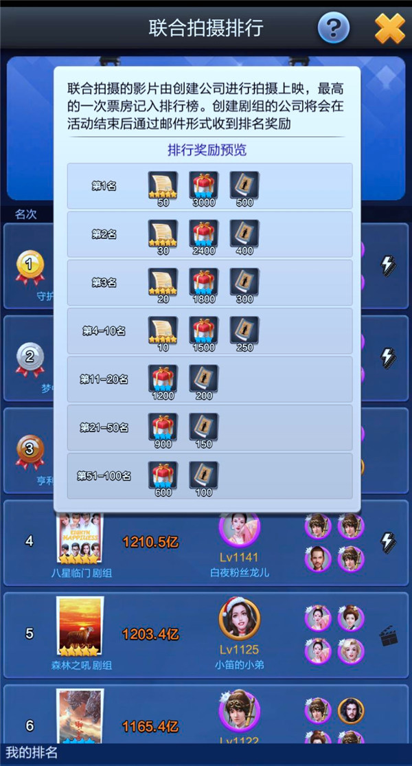 如图所示,每次限时一周的联合拍摄活动,只有总票房前十名的玩家才有机会获取到联合拍摄通用剧本分页·五星。因此,我们可以简单的理解为,这部分剧本奖励仅针对于部分可拍出高票房的高档位玩家,对于绝大多数低档位或者新入坑的玩家朋友来说,联合拍摄活动并不那么友好,至少从剧本获取上来看是这样。