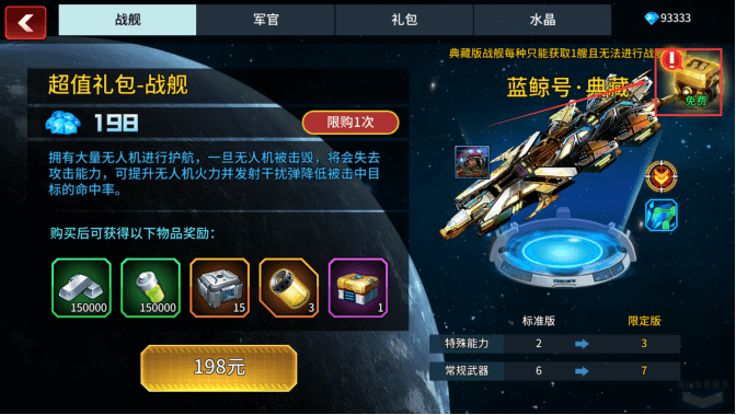 第七:打开商场,在右上角上有个礼包,每天可以领取一次,各5000资源;