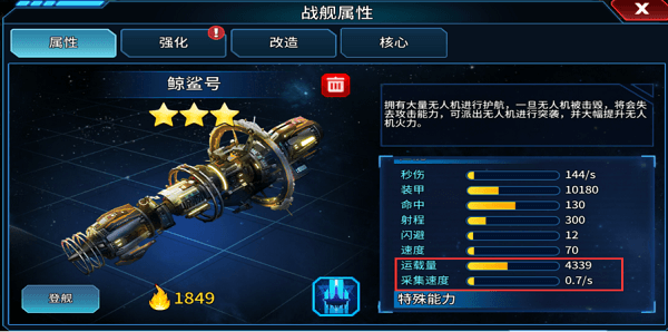 第五,我们可以直接派战舰去挖矿,战舰不要认为航母行军速度慢,航母去挖矿是最好的;从一个矿,我们可以看到每1.5个小时后可以获取2W资源。
