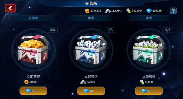 第四,行政大厅里面的交易市场每次需要花50水晶就可以购买5W的能源每天限购3次,加一次刷新,可能大家会想每天的水晶要那么多,后面还有一个这么获取水晶的一个说明,后期大家可以去看一下,这么获取水晶。