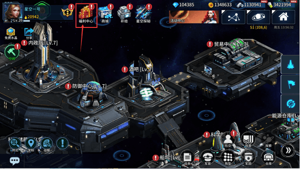 这个游戏我们唯一会欠缺的不是水晶,而是三种物资,金币,金属,能源。这些都是有限制的,除非你无限的去刷海盗或者一直挖矿,这样你就不会有能源的欠缺,下面我们来看我们可以从那些地方直接购买到,直接打开福利中心这个是获取能源的一个关键;