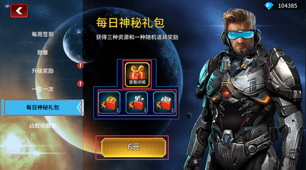 第三,福利中心里面的每日神秘礼包每天可以购买一次6元,可以获取各5W的能源,外交一个随机箱子,基本都是出强化材料和升星材料;