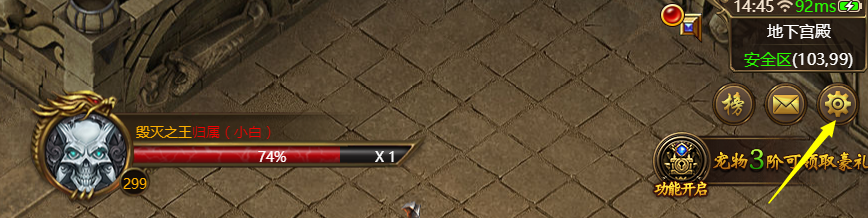 如何打开游戏设置:在屏幕的右上角点击如图所示。