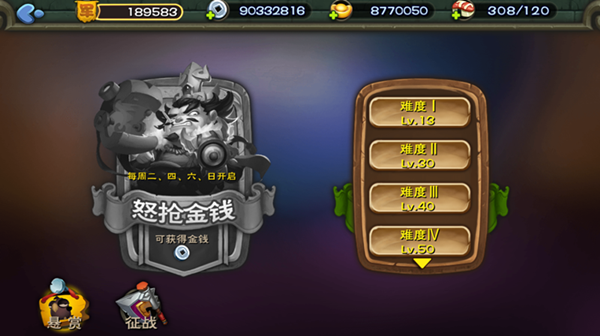 周二、周四、周六开启怒抢金币,不明思议就是通过这个副本可以获得很多的钱。