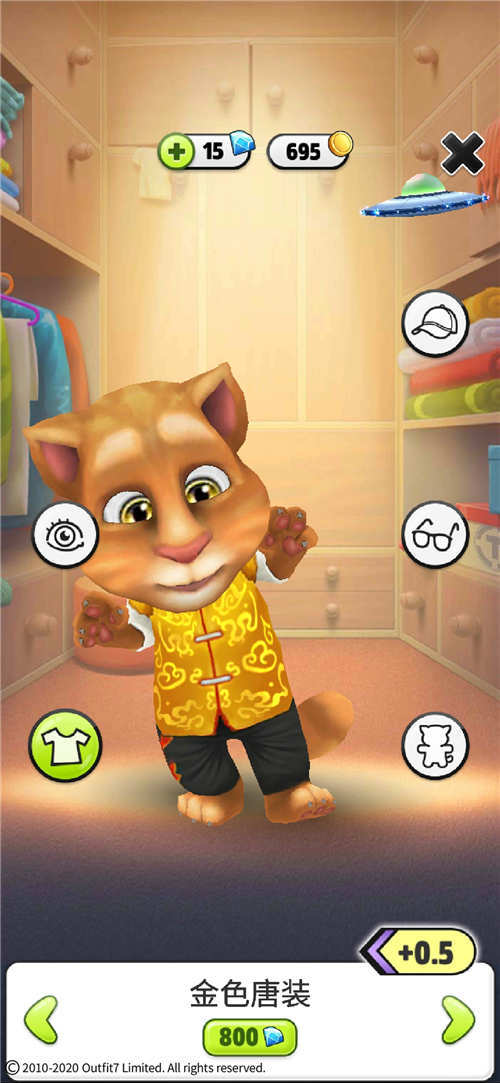 明黄色是一种既清新又传统的颜色,当雨天街道被灰黑色淹没时,往汤姆猫身上套件“金色唐装”添点色彩吧。