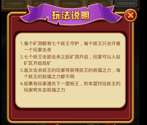 当然你进去了并不代表就能马上挖掘呀。咱们这矿洞可是有7个妖王把守着呢,你得先斩妖除魔,才能采矿挖矿,而且传说这7个斩杀妖王的功臣,在该矿洞会获得神秘的祝福之力哟。