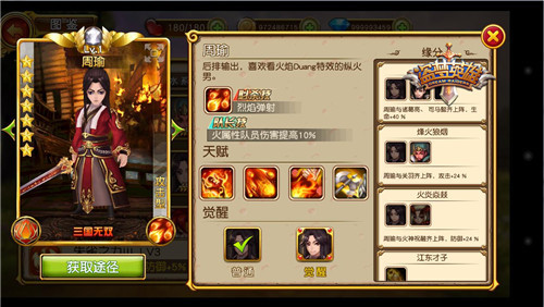 千古风流人物三国周郎,雄姿英发,谈笑间樯橹灰飞烟灭。周瑜的智慧相较于近妖的诸葛也不遑多让。化身火神归来的都督周瑜携简单粗暴、伤害爆炸的火属性技能让玩家见识赤壁火战盛况,为三国阵营带来超强战力,联手三国英雄再创辉煌。