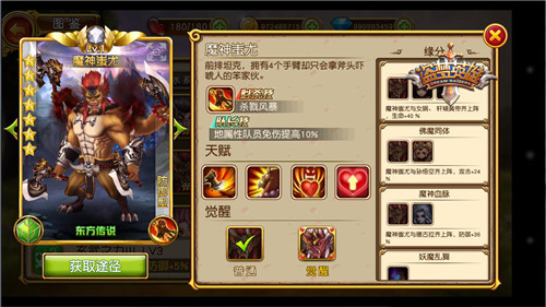 魔神蚩尤与黄帝战于涿鹿,最后乱战而死,但不失为一个可敬可怕的对手。面目狰狞的蚩尤四手持斧挥舞,身怀击飞、嘲讽等控制技能伤害不俗,恐怖战力如暴风一般横行战场。东方阵营再添蚩尤这一员前排猛将,必能佛挡杀佛,神阻灭神,所向披靡。