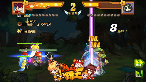 合击系统作为《崩坏动漫王》最为核心的玩法,可以说是吸引玩家们来小霸王这耍流氓的最大因素了,看着那一个个Q萌的佣兵用一排排清晰的站位使出一招招犀利的连击,怎一个爽字了得!玩家们需要通过合击系统的排兵布阵,来尽量激活每一个佣兵的连击技能,从而达到一战必连、一连必杀的效果,这其中佣兵的出场选择、佣兵职业的选择、佣兵的位置布置是玩家永恒的研究主题,其乐无穷。