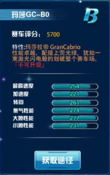 这次小编要介绍的限时赛车就是帅气到爆的玛莎GC-B0。这款车应该是少数现实系列车之一了,玛莎的外形是不用说了的,小编就是被它帅气的外形给吸引,除圣殿骑士外,是我最喜欢的一款B车了。