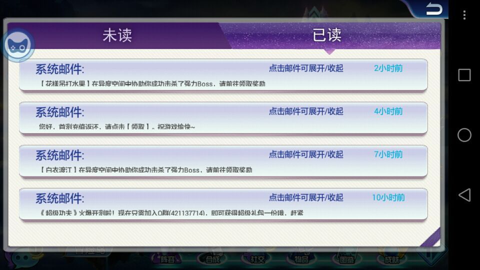 可以接受来自系统的邮件,邮件不仅仅只是文字内容哦,有时候还附带着系统给的奖励或礼物哦~
