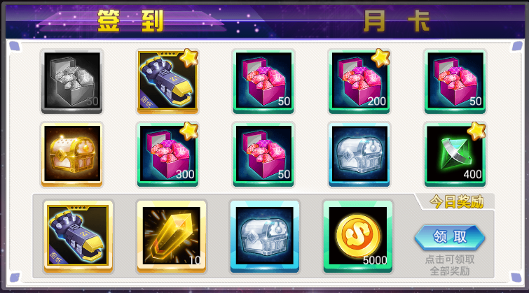每日登录都会得到相应奖励~~有钻石有金币~不每天来玩玩么