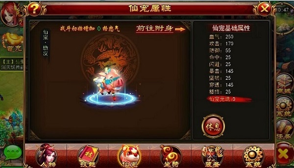 通过仙灵的成长能够获得较多的属性加成哦,可以通过菜单→仙灵进入仙灵的界面,下图为仙灵的等级界面,在这里,你可以对你的仙灵进行培养升级来获得属性的提升,当点击休息按钮的时候,任务将不会得到加成。