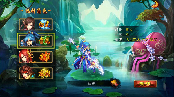 在打开游戏之后,会看到下图所示的界面哦,首先就是需要创建角色啦,有四种角色供大家进行选择,在右方对每种职业都有一个小小的说明,可以根据自己的喜好进行选择!