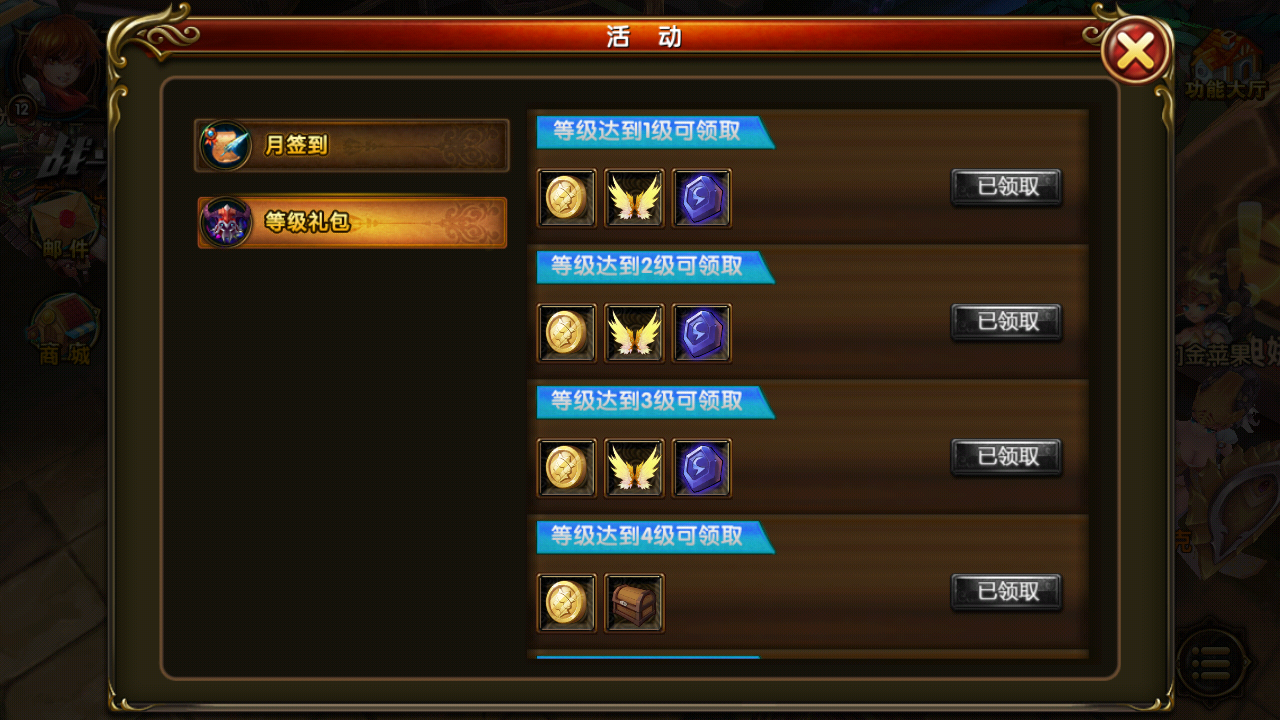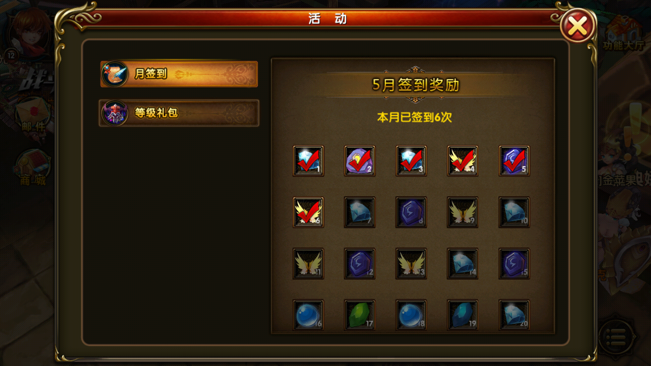 除了每日签到之外,游戏内的活动还有月签到,都会送出大量的道具。此外还有等级礼包不要忘记领取了,不得不说游戏里的福利可是满满的呢。