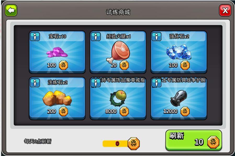 最后玩家可以用试炼得来试炼币进行奖励兑换装备,宝石,经验,等等~兑换时玩家不要犹豫小编觉得当下缺什么就兑换什么最实际不是嘛~