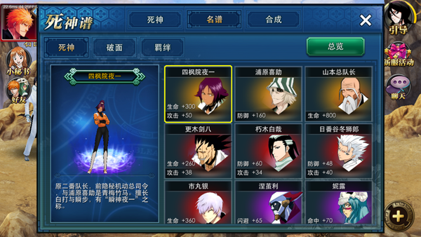 对死神粉来说,死神漫画中的人物你偏爱哪个呢?相信很多人都说不上唯一吧,因为里面的角色个性都太鲜明啦!每个角色够会有让人喜爱的一面,有时候真渴望能在现实世界上遇到他们。虽然这个是不可能的事,但是《死神归来》却在游戏中满足了大家的这个小小的愿望。我们可以通过“死神谱”的系统来激活人物卡片,并且可选择和你一起上阵战虚,使你的属性和作战能力得到大大的提升,是不是感觉就像喜爱的动漫人物变成了自己的小伙伴呢! “死神谱”里的名谱玩法也是小编非常喜欢的,只要激活了对应的卡片即可给角色增加永久属性。欣赏帅哥美女之余还能提升战斗力,何乐而不为呢!