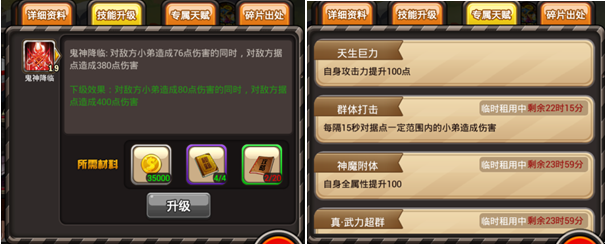 鬼神降临:对敌方小弟造成伤害,同时对敌方据点造成伤害
