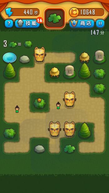 刚一进入无尽模式,就有几只巨猫在等着了,先在屏幕右侧种上植物,把它们圈养到地图左边去吧!需要注意的是,要从边缘和死路开始,把猫咪们赶到开阔地带。如果植物放到中间,既不利于接下来的布局,又容易让猫咪被堵死。