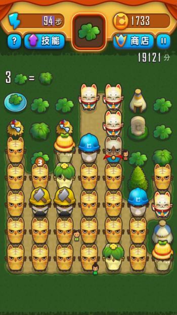 一个可爱的招财猫雕像出现在中间,其实这样做好浪费的说!但是我们可以继续合成,小宝箱、大宝箱什么的还在后头呢!