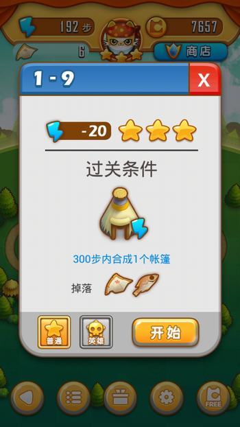 1-9关的复仇者黑胡子是《求合体2》中的第一个BOSS,关卡要求是在300步内合成一个帐篷。虽然合成帐篷对于一路过关斩将已经熟悉了游戏模式的玩家们不是什么难事,但是遇到能一直拆除建筑而且又打不倒杀不死的复仇者黑胡子,想要顺利的三星过关也不是那么的容易。毕竟人家是BOSS嘛!有超能力,任性!